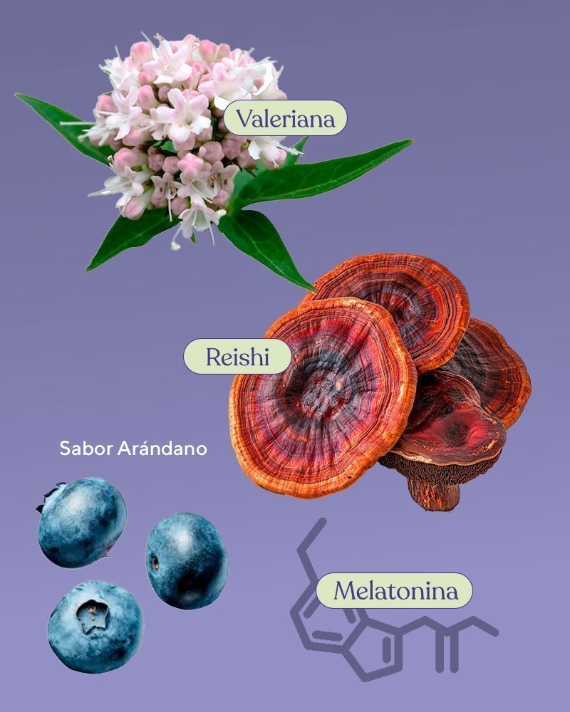 - Hongo Reishi + Melatonina + Valeriana + Vitamina B6